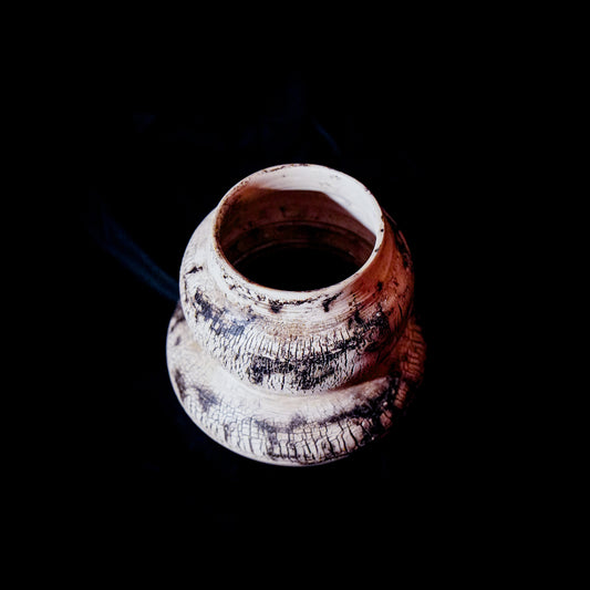 Particolare tecnica in cui l'oggetto viene immerso in una mistura di acqua, farina, lievito e zucchero che dona colorazioni su toni che vanno dal rosso/arancio al nero e infine cerato con cera d'api.