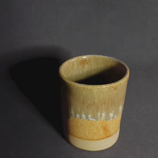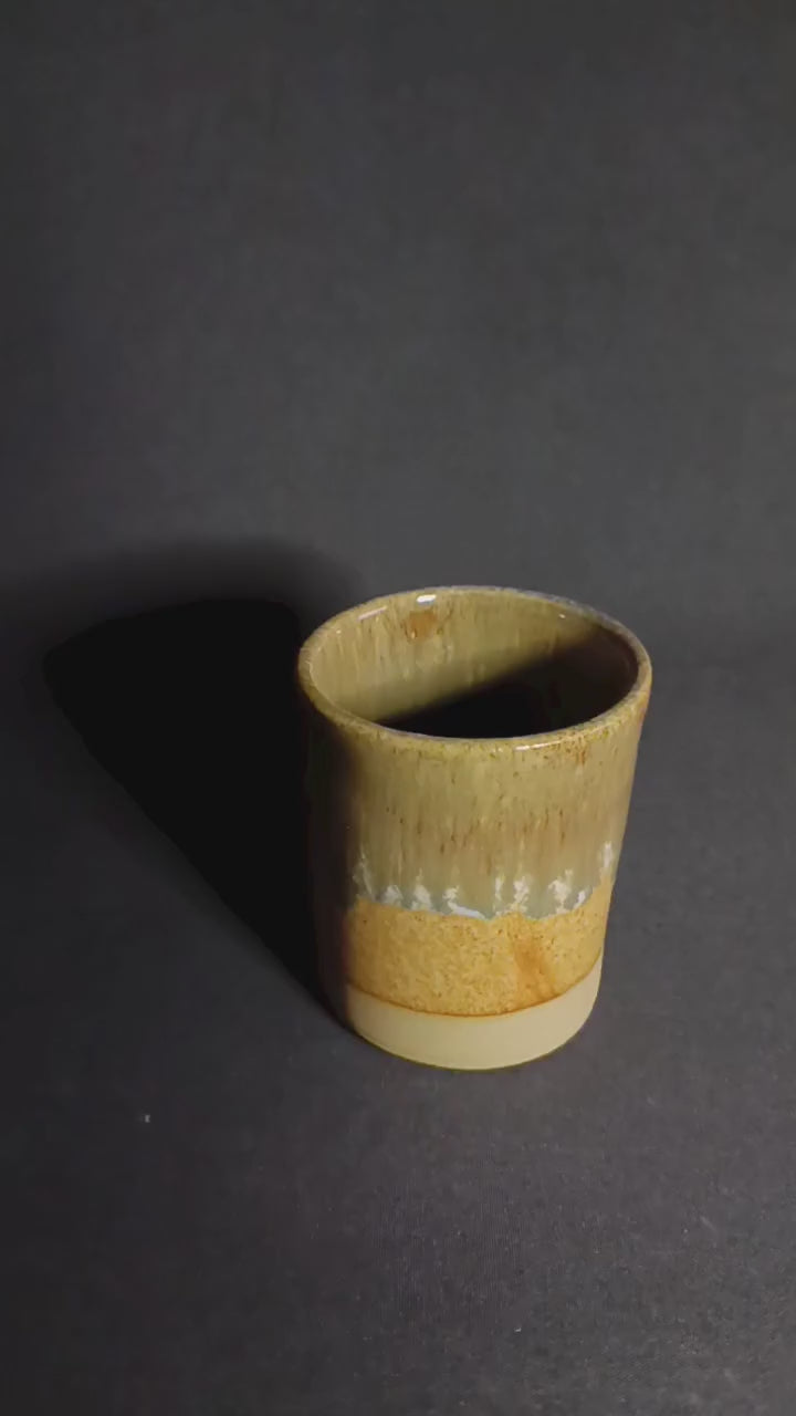Bicchieri fatta a mano in gres sui toni di arancio e verde con sfumature particolari.